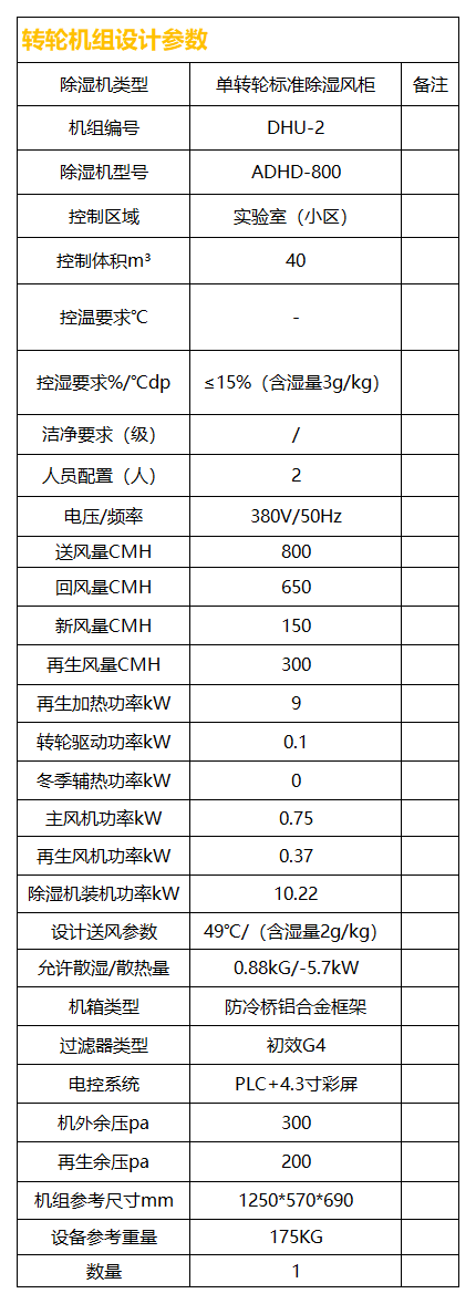 本項目含實驗室采用一臺單機轉(zhuǎn)輪(DHU-2)+直膨空調(diào);