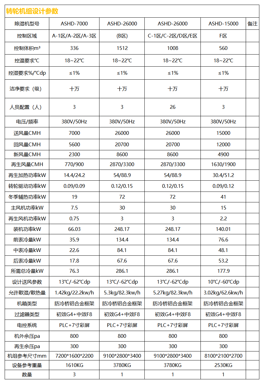 ①、轉輪除濕機組轉輪采用中高溫再生轉輪,其再生溫度在80℃-120℃時可穩定運行,這比傳統的轉輪再生溫度100℃-140℃低了20℃,降低能耗的同時也增加轉輪的使用壽命。